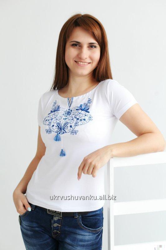 Молодіжна вишита жіноча футболка вишита синіми нитками Весна А-19